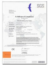 СЕРТИФИКАТЫ НА АВТОМАТИКУ ДЛЯ СДВИЖНЫХ ВОРОТ
