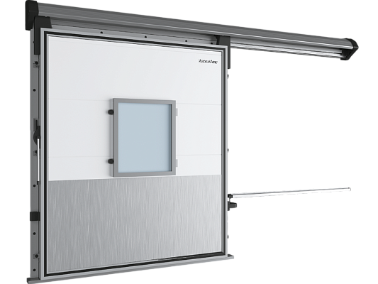 Дверь откатная серии RGS предназначена для установки в герметичных камерах, используемых для хранения фруктов и овощей в регулируемой газовой среде. Эта дверь оснащена специализированным уплотнителем и эксцентриковыми задвижками, обеспечивающими надежную герметичность. Алюминиевая рама и окантовка полотна гарантируют долговечность конструкции в условиях повышенной влажности.