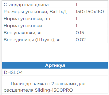 Цилиндр замка с 2 ключами для расцепителя Sliding-1300PRO