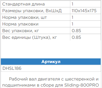 Рабочий вал двигателя c шестернкой и подшипниками в сборе для Sliding-1300/2100PRO