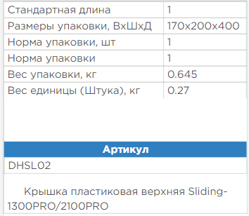 Крышка пластиковая верхняя Sliding-1300PRO/2100PRO